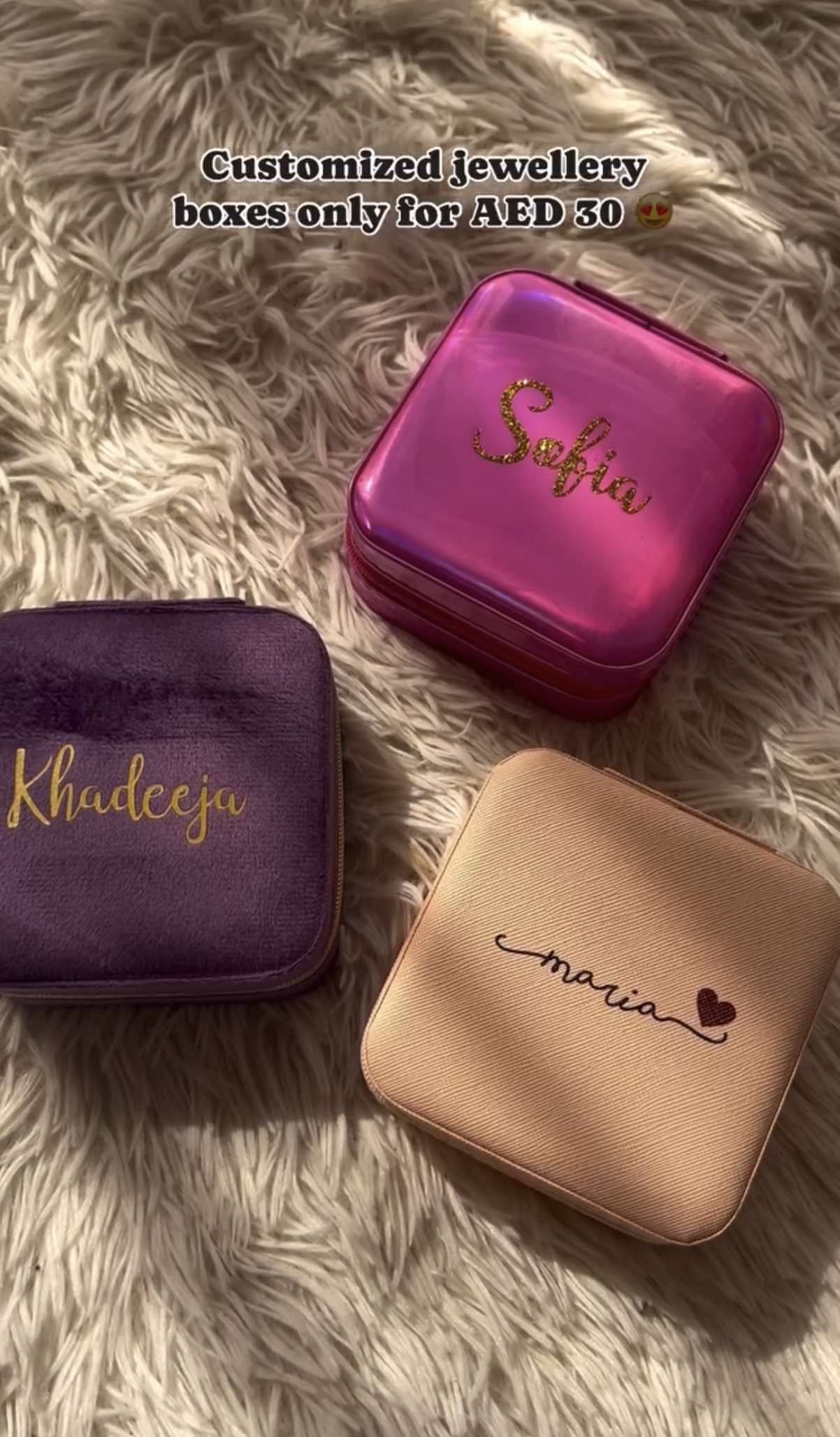 Customized gifts in UAE- including jewellery boxes, eye mask set, glass